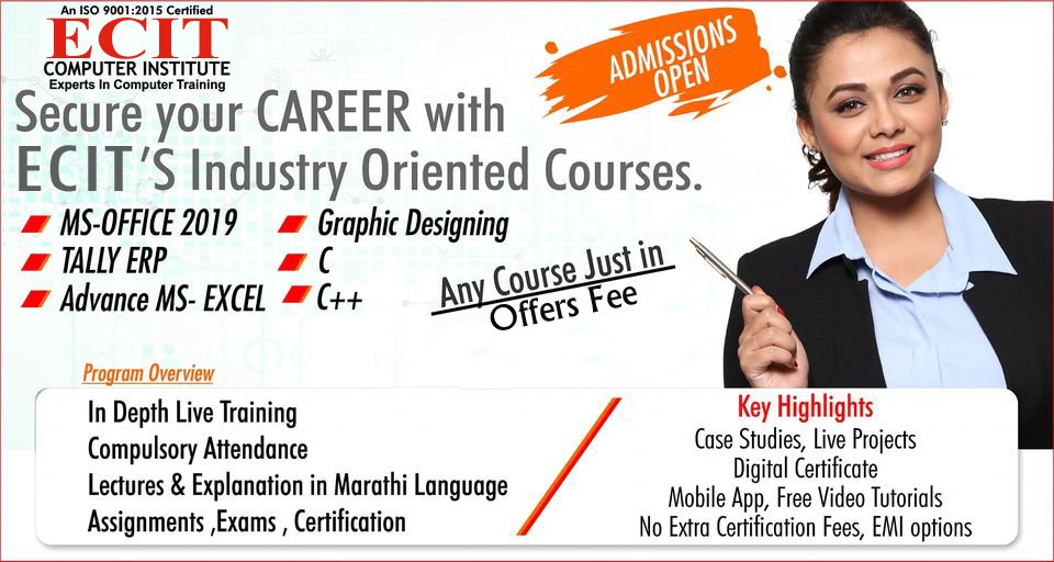 Excellent Computer Institute of Technology was established on 2015 (Registration No. 1422/15-16)registered under Societies Registration Act 21. 1860 established for providing computer literacy. Excellent Computer Institute of Technology is approved and accredited from ISO 9001:2015 certified to provide diploma courses for compute application software training courses and vocational training program. Thank you for Opportunity and Privilege to introduce the computer training course offered by ECIT. Excellent Computer Institute of Technology prides itself as one of the upcoming leaders in the computer training course which includes: Fundamental, software, professional course, hardware course. We provide the latest technology and course material allowing us to give our students the best training possible at institute. Today’s economic trends have changed forcing many individuals to downsize their identity in order to meet their bottom line goals. We provide flexible end to end solution that assist individuals to meet their objective by giving the best possible training at affordable fee